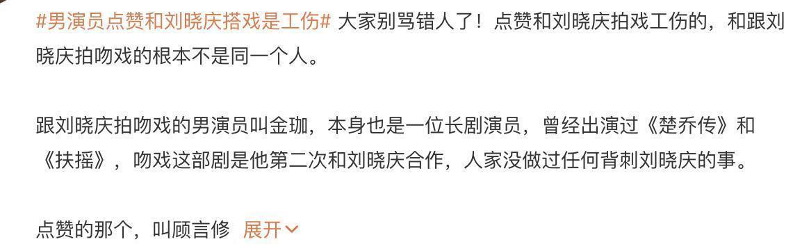 这就很有意思了。一个根本没有和刘晓庆演亲密戏的男配角,一个可能连正脸都没几个的演员,却在评论区点赞内涵同事的言论。