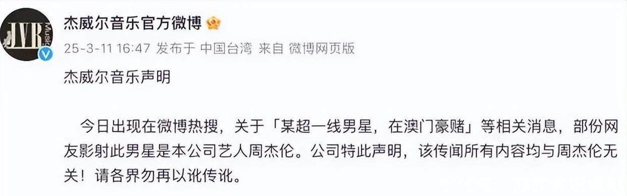 在这波舆论攻势里,连无辜的周杰伦也难免被牵扯进去,爆料中提到“超一线男星”,当时他正忙于海外巡演,部分营销账号还故意暗示两人“合伙赌博”。