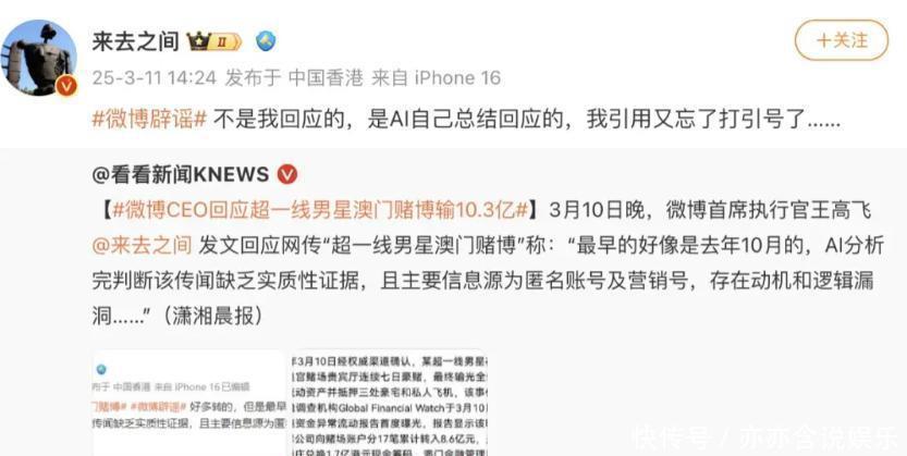 微博的CEO王高飞也经过AI模型追溯分析,发现这则谣言的关键内容都来自匿名账号,根本没有任何切实的证据支持,纯粹就是个“流量陷阱”。